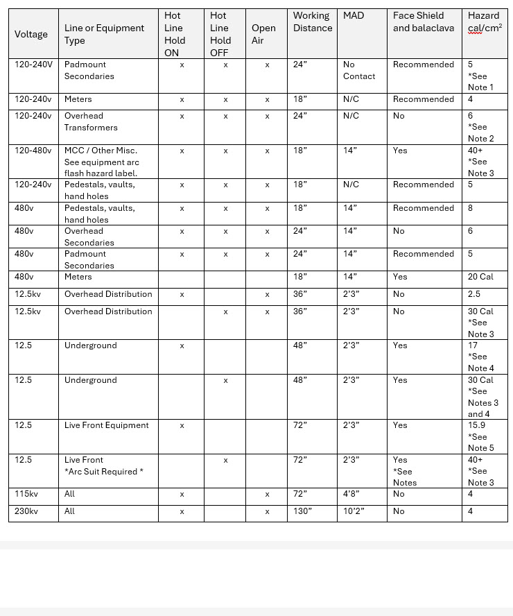 Note: Work with exposure above 40cal/cm2 or greater is prohibited.
